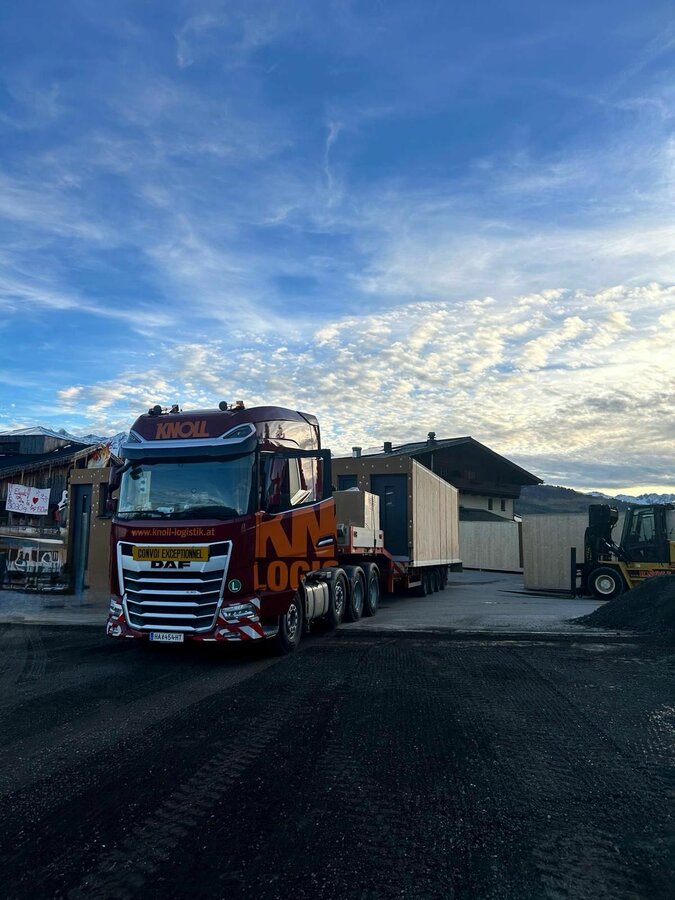 Wir hatten das Vergnügen, mehrere Raumzellen vom Zillertal über den Gerlospass nach Königsleiten in Wald im Pinzgau zu transportieren.